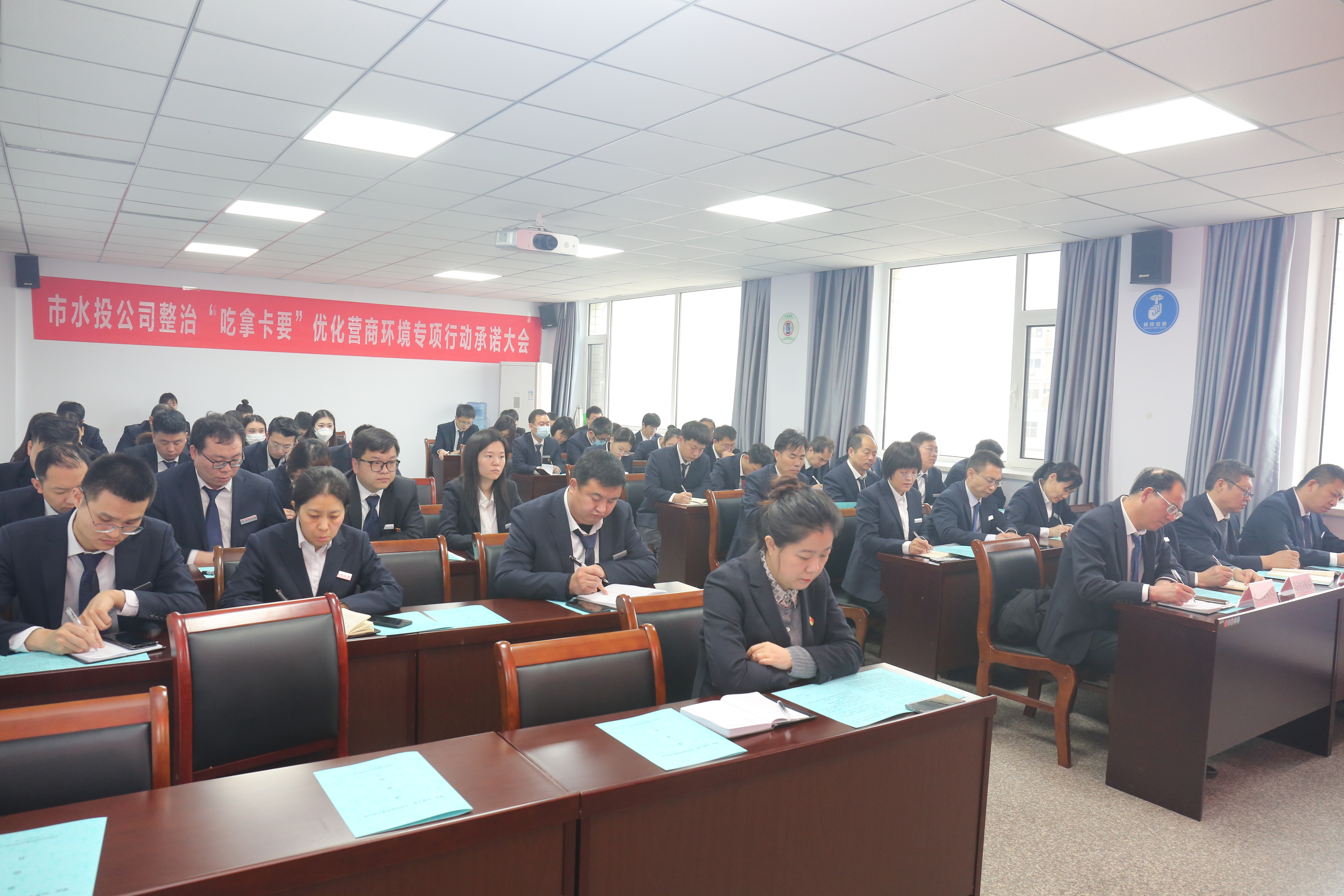 為深入貫徹市紀(jì)委五屆三次全會精神,落實市委辦公室關(guān)于《運(yùn)城市整治“吃拿卡要”,優(yōu)化營商環(huán)境專項行動實施方案》的要求,進(jìn)一步創(chuàng)優(yōu)發(fā)展環(huán)境,提升工作效率,樹立良好的企業(yè)形象。2月8日上午,公司召開整治“吃拿卡要”優(yōu)化營商環(huán)境專項行動承諾大會。公司黨委書記、董事長崔作銘主持會議,公司黨委班子、4家子公司班子成員及機(jī)關(guān)全體工作人員共計57人參加會議。