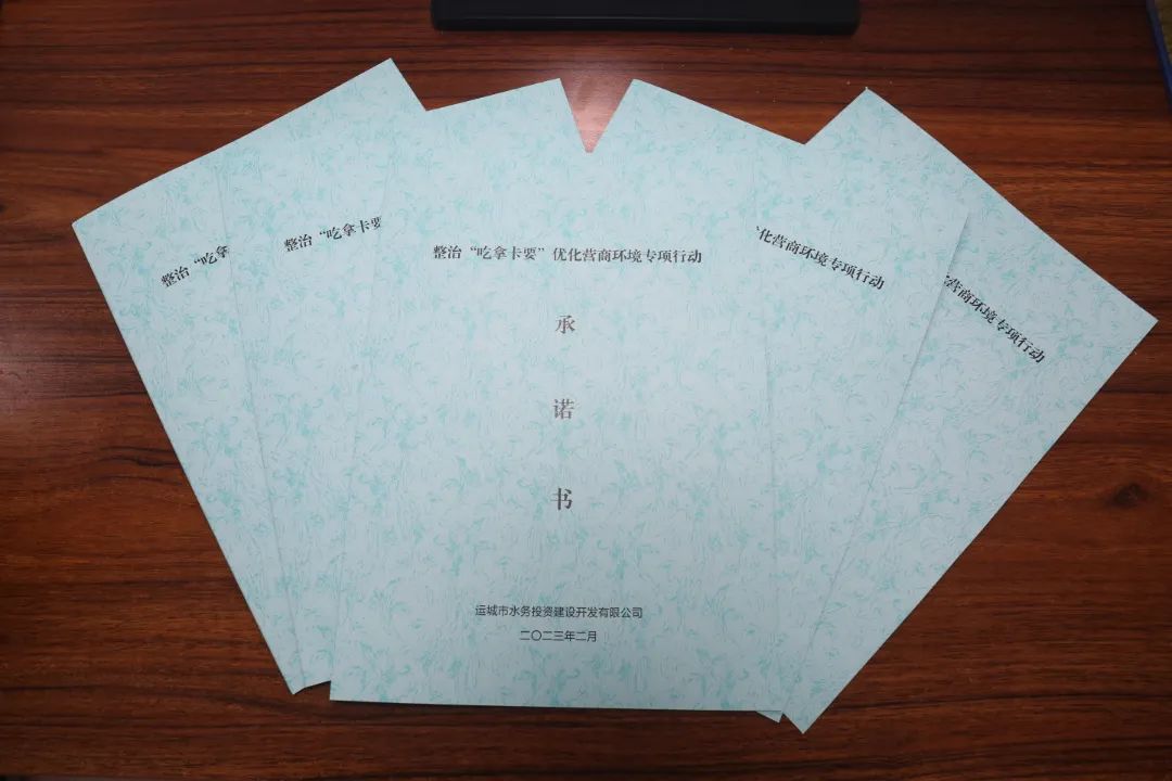 會上,公司黨委委員、紀(jì)委書記王望寬宣讀了市水投公司《整治“吃拿卡要”優(yōu)化營商環(huán)境專項行動實施方案》。根據(jù)此次專項行動提出的30種“吃拿卡要”行為,結(jié)合公司實際,從落實市委市政府、公司黨委的重大決策部署方面;項目推進(jìn)、業(yè)務(wù)辦理方面;日常工作開展方面;個人生活作風(fēng)建設(shè)方面,制作了水投公司整治“吃拿卡要”優(yōu)化營商環(huán)境專項行動承諾書。